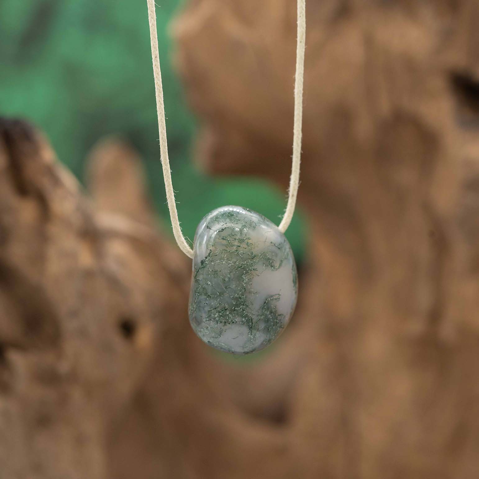 Durch seine positiven Schwingungen stärkt der Moosachat die Fähigkeit zur Kommunikation und bringt einen klaren, wachen Verstand mit sich. Besonders hilfreich ist er für alle, die in herausfordernden Zeiten inneren Halt und eine zusätzliche Kraftquelle suchen. Körperlich unterstützt er das Wohlbefinden, fördert den Lymphfluss und wirkt bei Wetterfühligkeit ausgleichend. Dieser Anhänger wird zu einem wertvollen Begleiter, der Sie in Zeiten des Wandels mit seiner Stärke unterstützt.