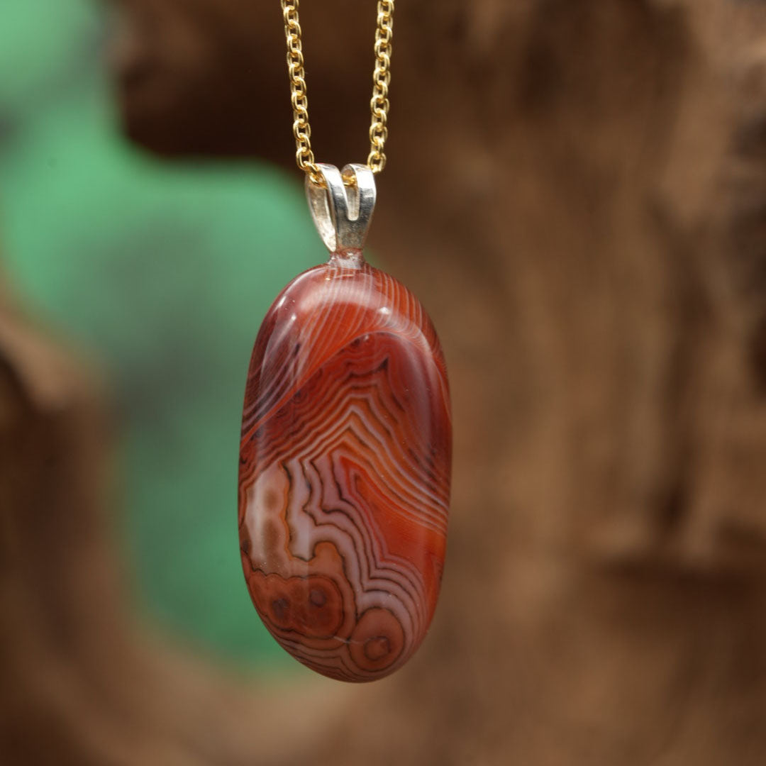 Der Achat "Orbicularachat" Anhänger ist ein kraftvoller spiritueller Begleiter, der Ihnen hilft, Regeneration und Wandel durch Stabilität zu unterstützen. Seine einzigartigen Eigenschaften fördern Flexibilität im Wachstumsprozess und helfen Ihnen, sich auf das Wesentliche zu konzentrieren, während er gleichzeitig logisches Denken anregt.