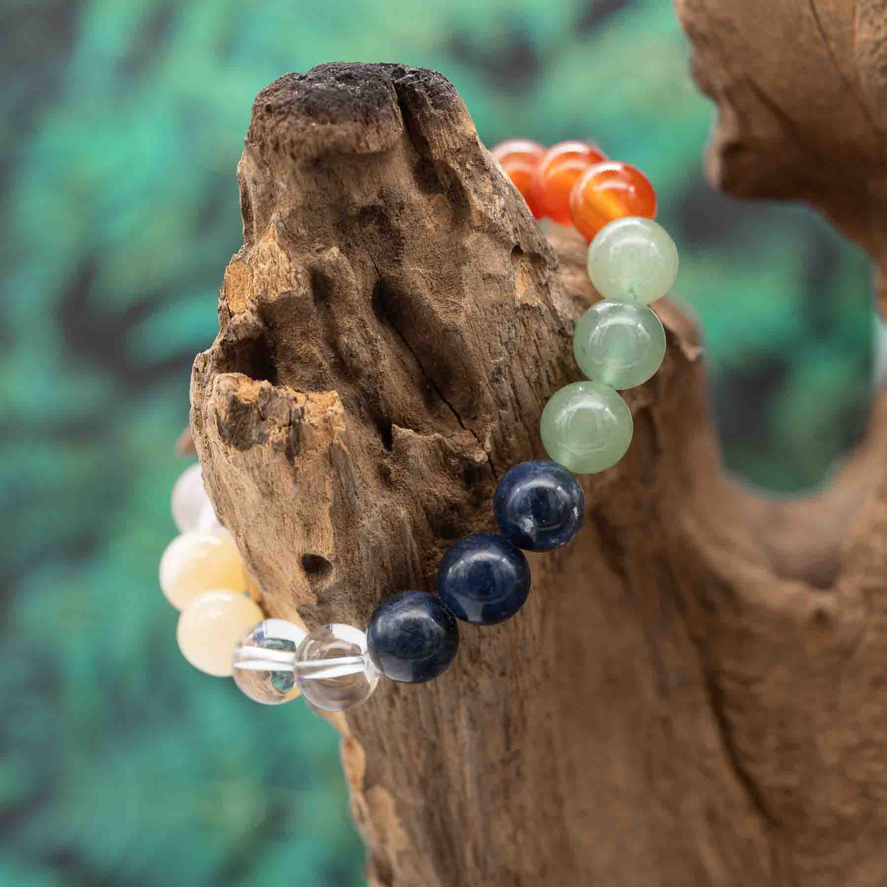 Das Chakra Armband mit 10mm Perlen vereint die energetischen Eigenschaften von sieben kraftvollen Edelsteinen. Diese harmonische Kombination unterstützt Sie auf Ihrem Weg zu innerer Balance und persönlichem Wachstum. Die harmonisierenden Energien fördern Selbstvertrauen und stärken Ihre Intuition, während sie gleichzeitig eine positive Ausstrahlung vermitteln. Tragen Sie dieses Armband als ständigen Begleiter, um Ihre Achtsamkeit zu schärfen und den Fluss positiver Energien in Ihrem Leben zu aktivieren. Es ist nicht nur ein schöner Schmuck, sondern auch ein kraftvoller spiritueller Begleiter.