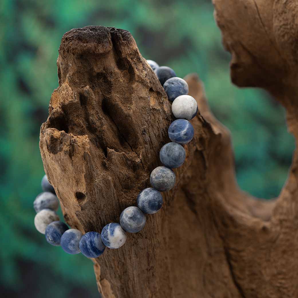 Fühlen Sie sich geerdet und harmonisiert mit diesem Sodalith Armband, das mit matten, runden 8mm Perlen bestückt ist. Sein sanftes, mattes Finish gibt ihm eine besondere Tiefe und schafft eine ruhige Präsenz um Ihr Handgelenk. Jede Perle ist mit der ruhigen, ausgleichenden Energie des Sodaliths geladen, um Sie in Ihren täglichen Aktivitäten zu unterstützen.