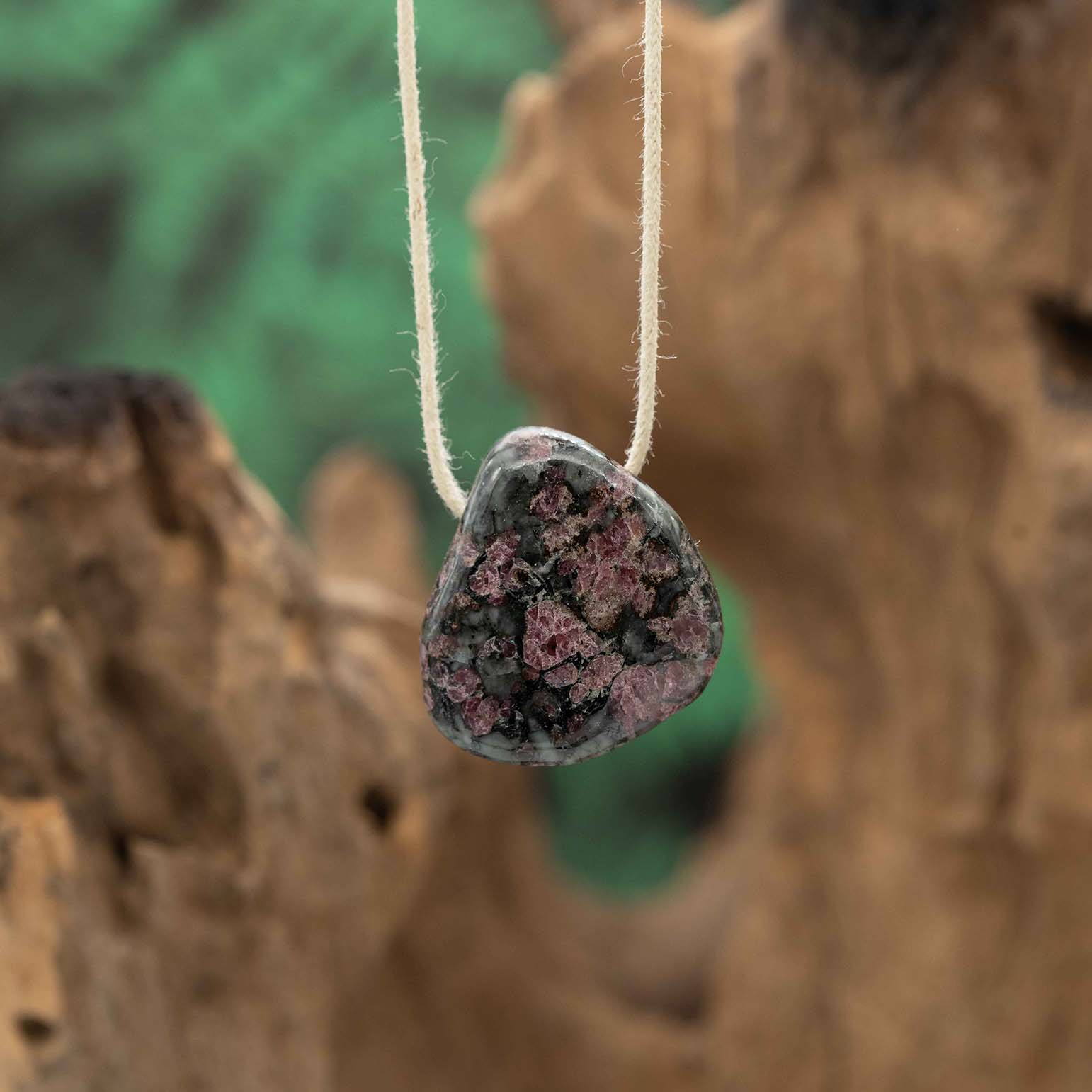 Der Eudialyt Anhänger ist ein kraftvoller Begleiter für Zeiten des Wandels und Neubeginns. Mit seiner tiefen Wirkung unterstützt er dabei, Trauer, Angst und Schmerz zu überwinden und hilft, Altes loszulassen, um Platz für Neues zu schaffen. Dieser Stein fördert die innere Stärke und das Erkennen eigener Schwächen und Fehler, was ein wichtiger Schritt in persönlichen Wachstumsprozessen sein kann.