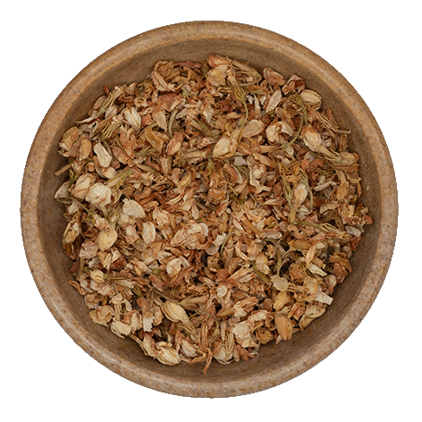 Die Jasminblüten (Jasminum officinale) gelten als traditionelles Aphrodisiakum und verbreiten einen lieblichen Duft, der zu sinnlich entspannten Stunden einlädt. Sie bieten sanfte, euphorisierende Düfte für Liebe, Zuversicht und Optimismus und können bei Erschöpfung und Stress stimmungsaufhellend wirken.