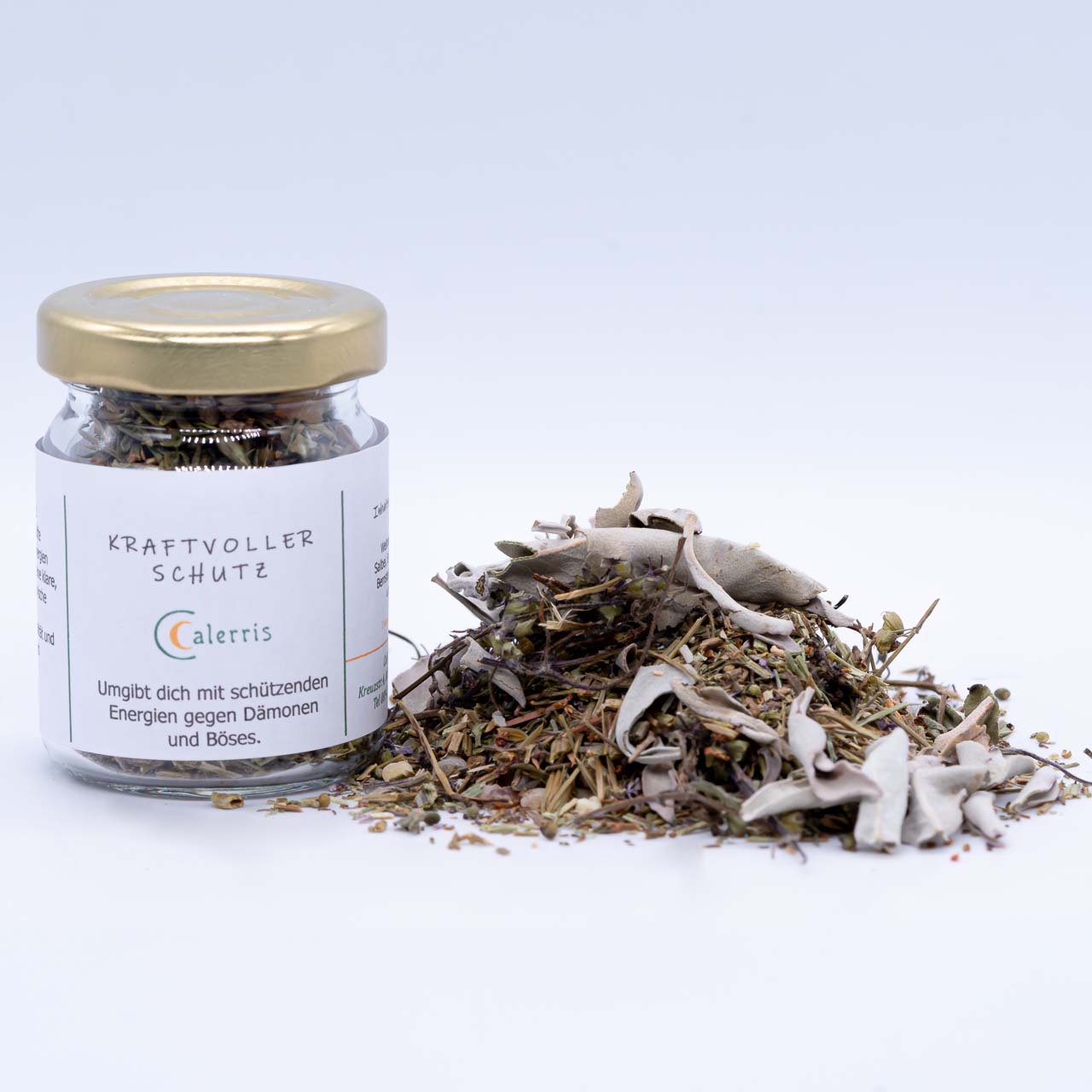 Vertreibt dunkle Energien und Dämonen mit den balsamisch herben Düften würziger Kräuter. Für eine klare, kraftvolle und dynamische Atmosphäre. Bringt zugleich Stabilität und Ruhe, sowie Kraft und Lebensenergie. Die Mischung bringt Schutz gegen alle Arten böser oder unerwünschter Energien und kann zugleich helfen Erfolg, Konzentration und Erdung zu fördern.