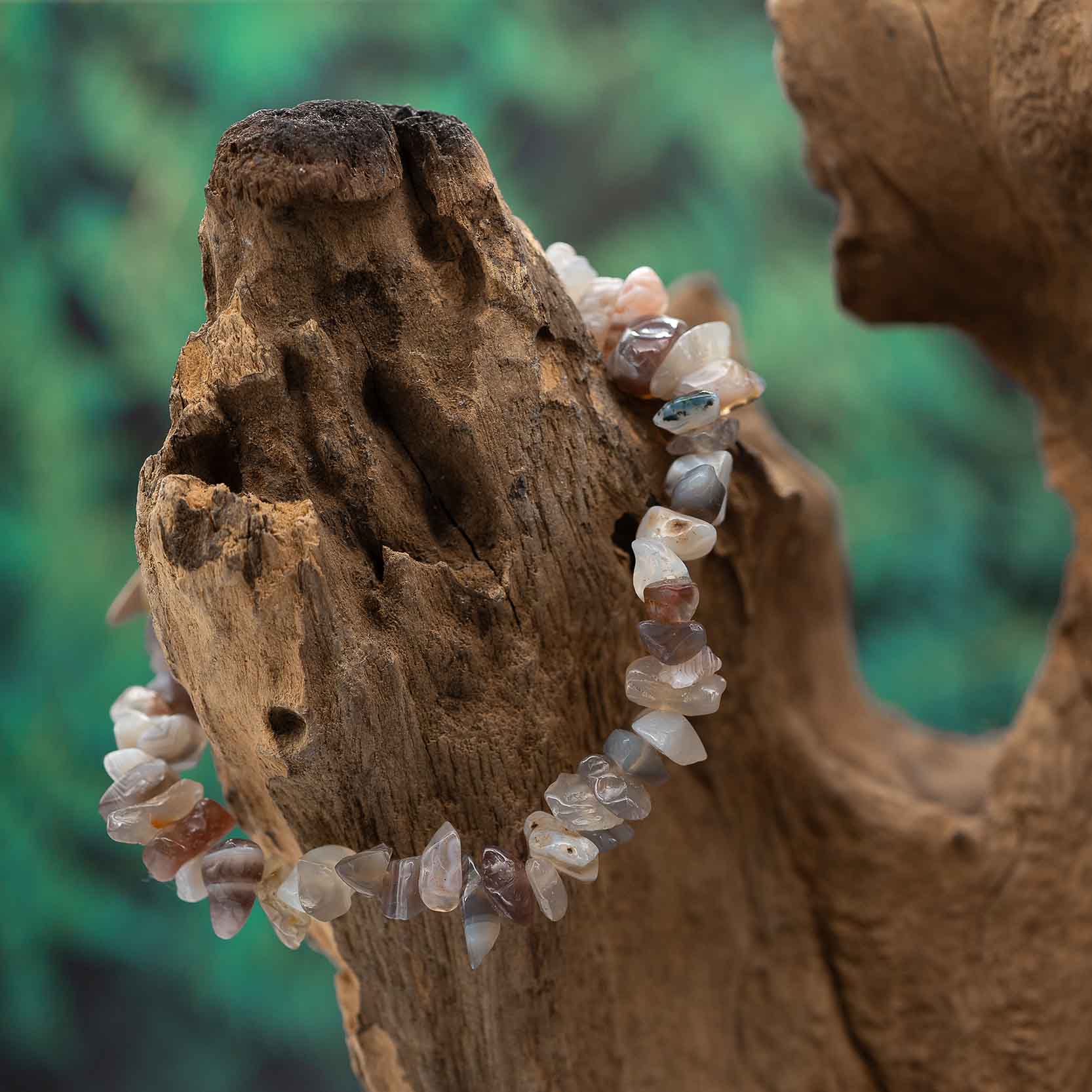 Das Achat Splitter Armband ist ein perfektes Zusammenspiel von Kunst und Natur. Die fein geschliffenen Achat-Splitter, die auf dieses Armband aufgereiht sind, stammen aus dem fernen Botswana. Sie fangen die Essenz der natürlichen Schönheit ein und verwandeln sie in ein tragbares Accessoire. Das Splitterarmband ist eine wunderschöne Art und Weise, um den Kontakt mit der Natur und ihren heilenden Energien zu pflegen.