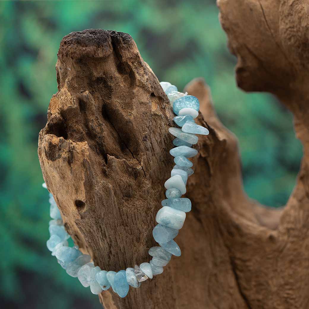Unser Aquamarin Splitterarmband in A Qualität ist ein exquisites Schmuckstück, das Sie mit seiner außergewöhnlichen Schönheit und seinen heilenden Eigenschaften begeistern wird. Der Aquamarin, der aus Brasilien stammt, vermittelt Leichtigkeit und heitere Gelassenheit, fördert das geistige Wachstum und steigert die Weitsichtigkeit. Er sorgt für Ordnung und Harmonie in Ihrem Leben und stärkt Ausdauer, Zielstrebigkeit und Durchhaltevermögen. Er ist auch bekannt für seine positive Wirkung auf Schilddrüse, Hormone, Sehkraft und Allergien. Dieses hochwertige Armband besteht aus Splittern von Aquamarin, die sorgfältig ausgewählt wurden, um ein Schmuckstück von höchster Qualität und unvergleichlicher Schönheit zu schaffen.